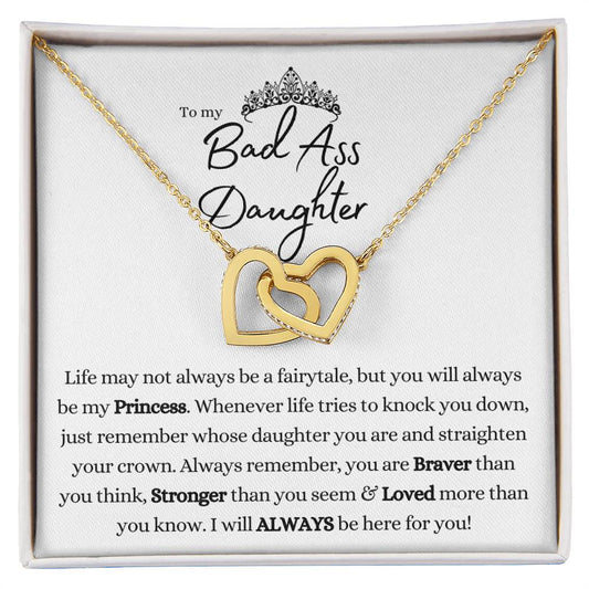 TO MY BAD ASS DAUGHTER INTERLOCKING HEARTS NECKLACE