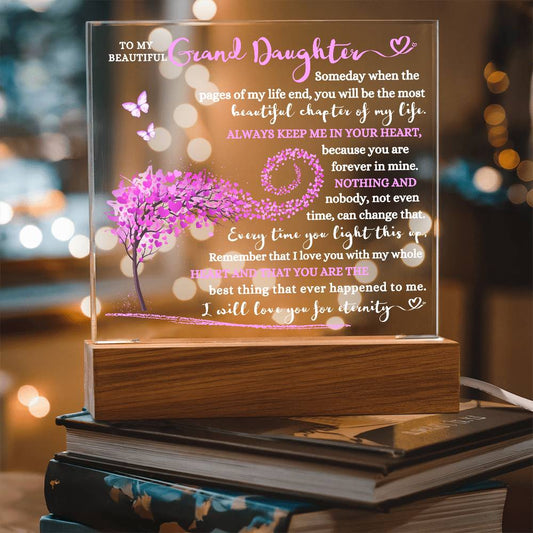 TO MY BEAUTIFUL GRAND DAUGHTER KEEPSAKE LED NIGHT LIGHT UP LAMP ACRYLIC PLAQUE