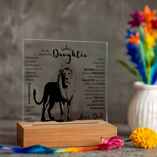TO MY BEAUTIFUL DAUGHTER THIS OLD LION LED NIGHT LIGHT UP LAMP ACRYLIC PLAQUE