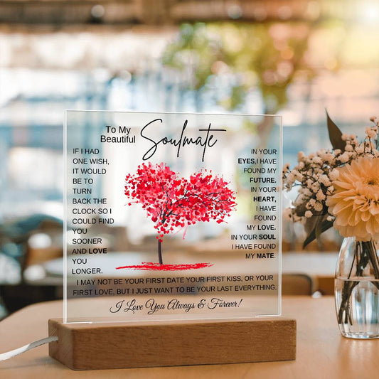 TO MY SOULMATE LED NIGHT LIGHT UP LAMP ACRYLIC PLAQUE