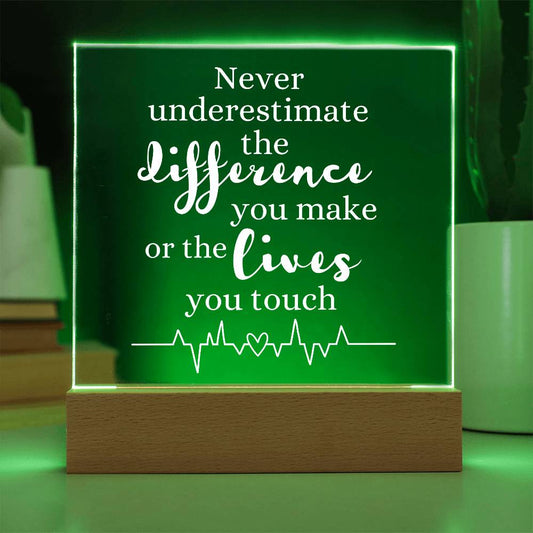 HEALTHCARE GIFT LED LIGHT UP PLAQUE - NEVER UNDERESTIMATE THE DIFFERENCE YOU MAKE OR THE LIVES YOU TOUCH
